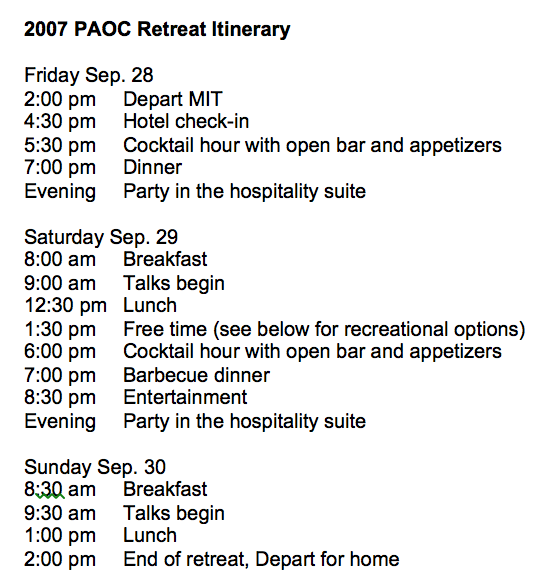 2007 PAOC Retreat Itinerary September 15, 2016Full resolution (542 × 588) ← Previous Next → 2007 PAOC Retreat Itinerary