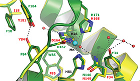 WHOI marine chemist Mak Saito collaborated with biomedical researchers at Johns Hopkins University, applying his proteomic techniques to explore proteins in a terrestrial organism, the bacteria that cause Lyme Disease. Unlike all other known organisms, Borrelia burgdorferi need manganese (blue dot), rather than iron, to serve as linchpins bonded into key enzymes. The scientists found that to cause disease, Borrelia require unusually high levels of manganese. The findings open new avenues to search for ways to attack the bacteria.
