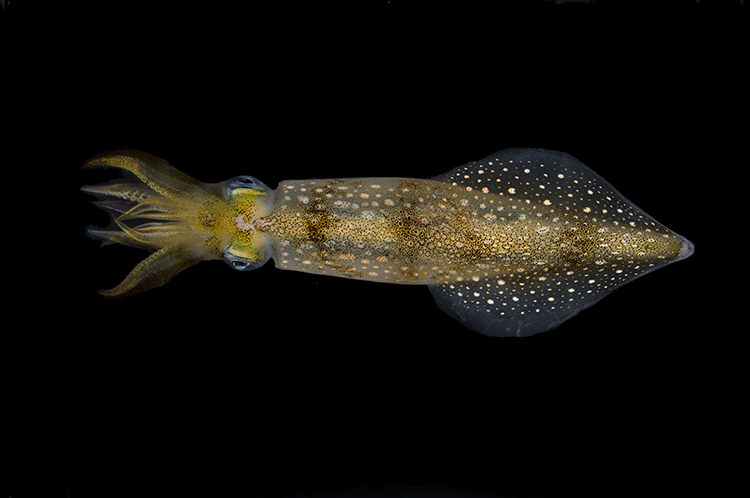 Adult Atlantic longfin squid (Loligo pealeii) are ecologically and economically important in the northern Atlantic Ocean. The research team gathered adult squid in Vineyard Sound to study how their hatchlings respond to normal and acidified ocean conditions in the lab.