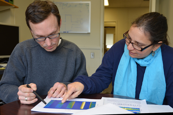 Enlarge Image Seismologist Dan Lizarralde and whale biologist Laela Sayigh think new software could be developed to extract whale calls from recordings made by seismic instruments. If successful, their work could make seismic records a huge source of data on whale calls.